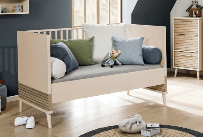 PAIDI, Eefje Cashmere Beige/Groovy Oak, Eefje Cashmere Beige/Groovy Oak 70x140 omvb, babybed omvormbaar tot juniorbed/babybed omvormbaar tot bedbank