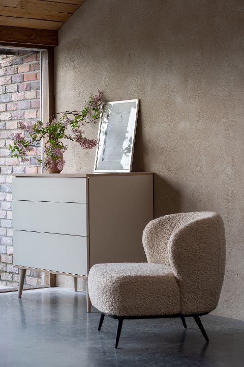 | · Deze serie kenmerkt zich door: | de strakke lijnen, de afwerking met houten poten |